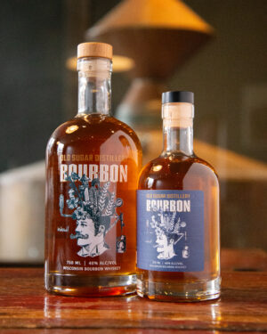 Our Midwestern style bourbon is a mind explosion of cherry wood smoked malt and our signature corn-based mash. The spirit is aged in small charred oak barrels, resulting in a deep, well-rounded bourbon.