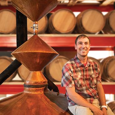 Brown Sugar is poured into still boiler along with about 150 gallons of hot water. It is then stirred and circulated with a pump to ensure it is completely dissolved. Heated again for sterilization, it is then pumped to the fermentor where it is diluted and inoculated with yeast. Two weeks later it is ready to distill. Note: taken at the old location.